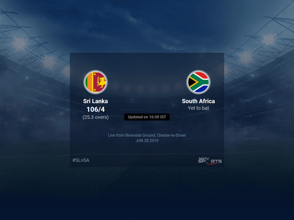 Live Updates of Today Match between Sri Lanka vs South Africa from Riverside Ground, Chester-le-Street. Check commentary and full scoreboard of the match.