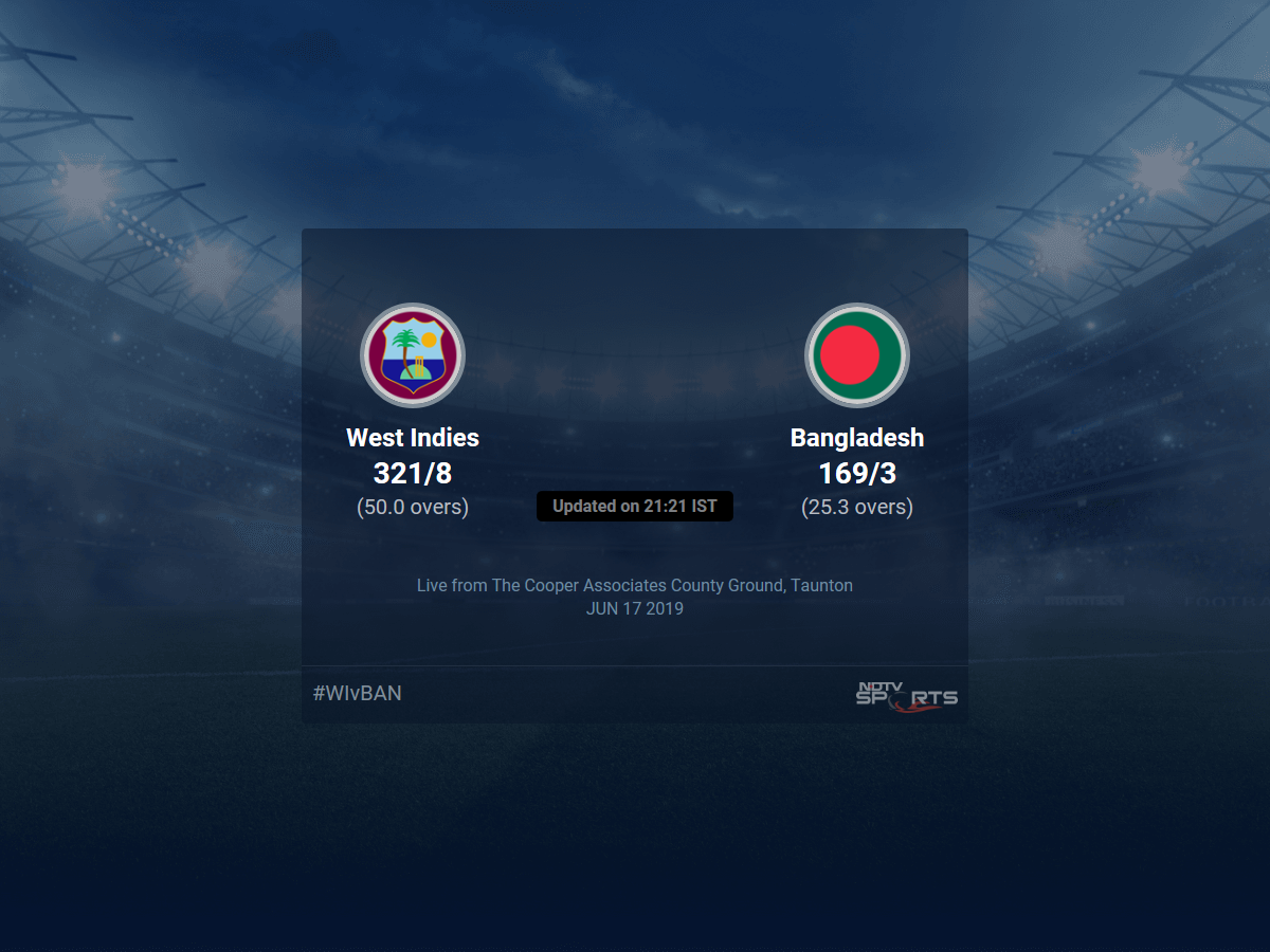 Live Updates of Today Match between West Indies vs Bangladesh from The Cooper Associates County Ground, Taunton. Check commentary and full scoreboard of the match.