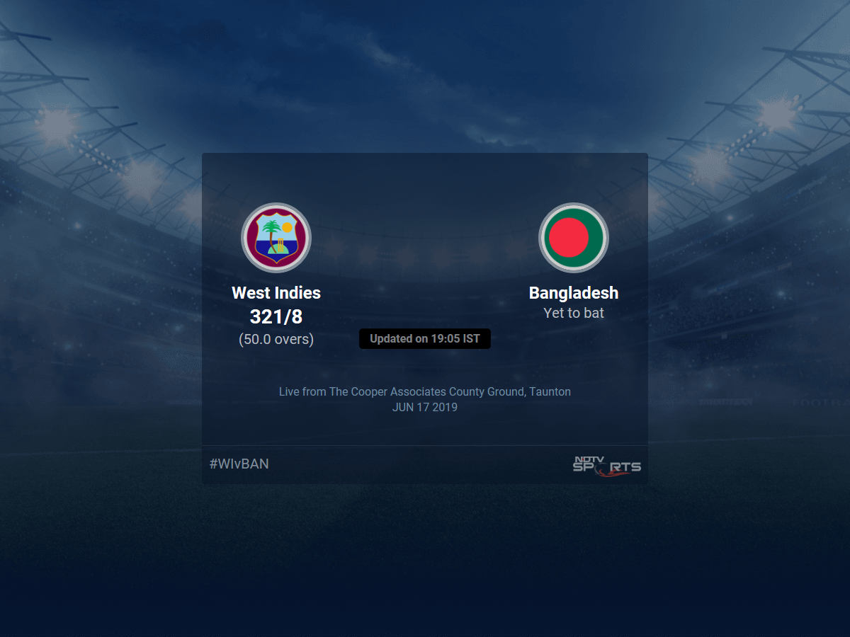 Live Updates of Today Match between West Indies vs Bangladesh from The Cooper Associates County Ground, Taunton. Check commentary and full scoreboard of the match.