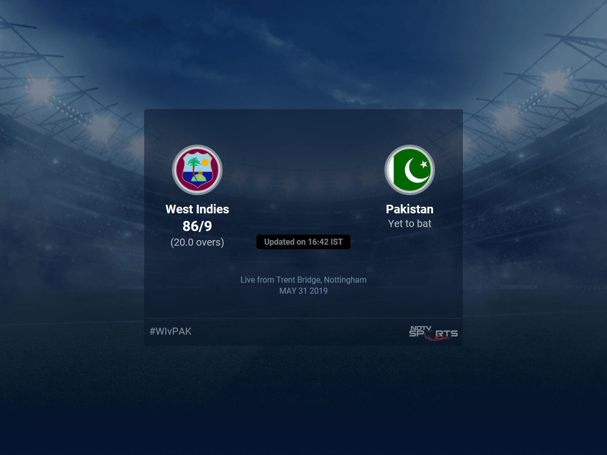 Live Updates of Today Match between West Indies vs Pakistan from Trent Bridge, Nottingham. Check commentary and full scoreboard of the match.